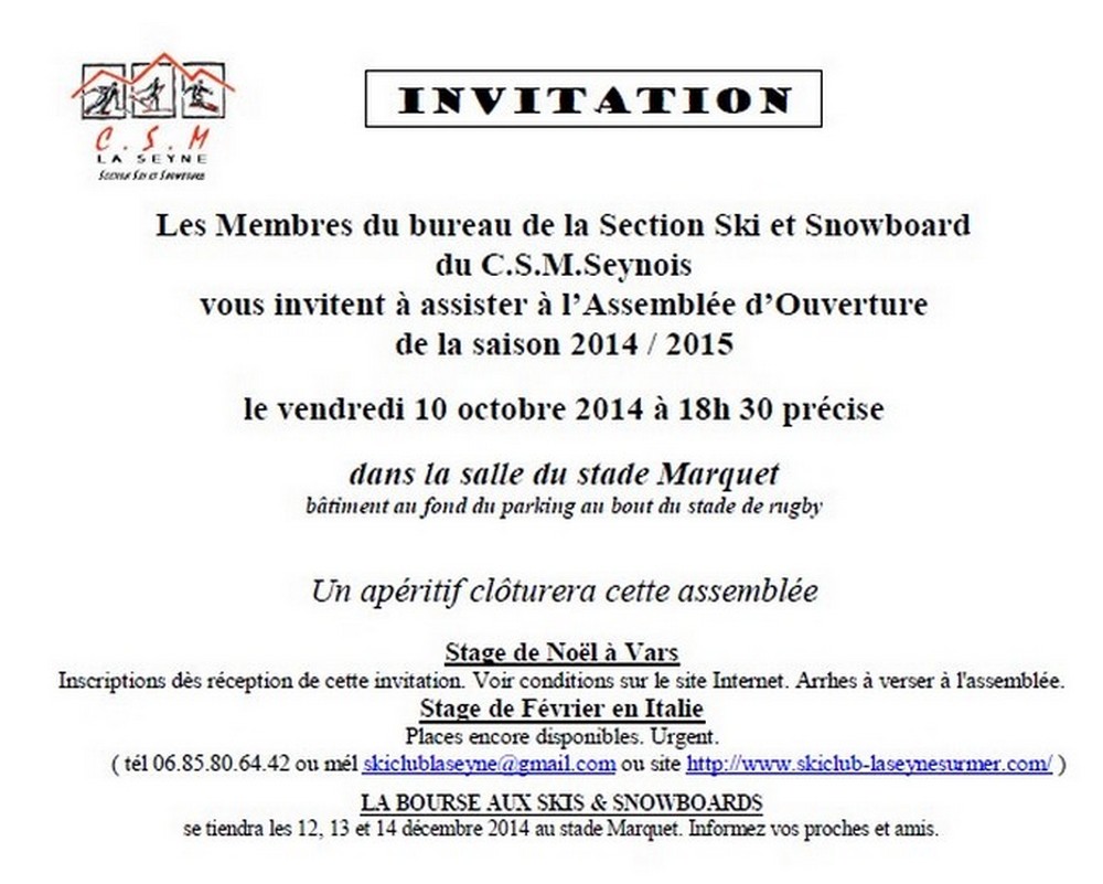 Elle va avoir lieu le Vendredi 10 octobre 2014 à 18h30 au stade Marquet.